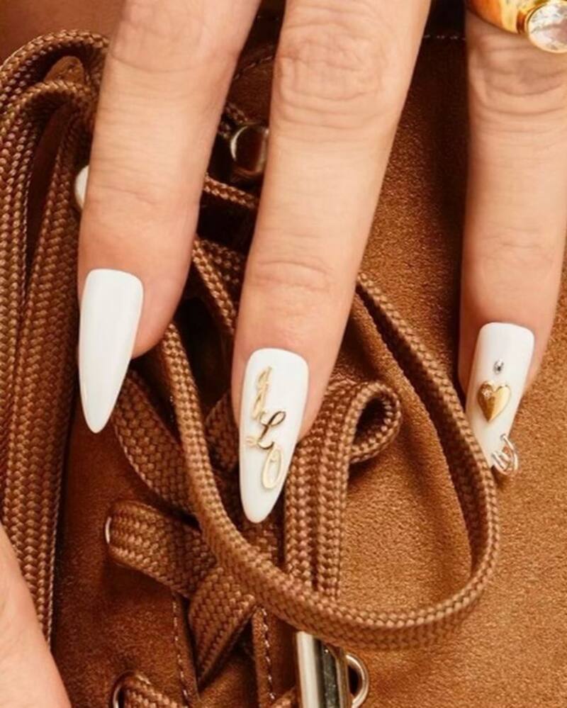 La esposa de Ben Affleck apostó por unas cadenas que lucieron a lo largo y ancho de algunas uñas, además de unos corazones dorados, uno perfilado y otros rellenos, los cuales serían un guiño al romance que mantiene con el actor y productor de Hollywood.