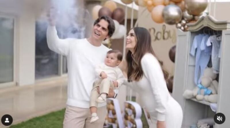 En el clip se puede ver a todos los invitados reunidos en un jardín para celebrar con la familia Valladares Navarrete, mientras una decoración con globos acapara el lugar. Para conocer el género del bebé, la modelo abre un ropero que está lleno de ropa azul y blanca, mientras el feliz papá con humo azul refrenda el sexo.