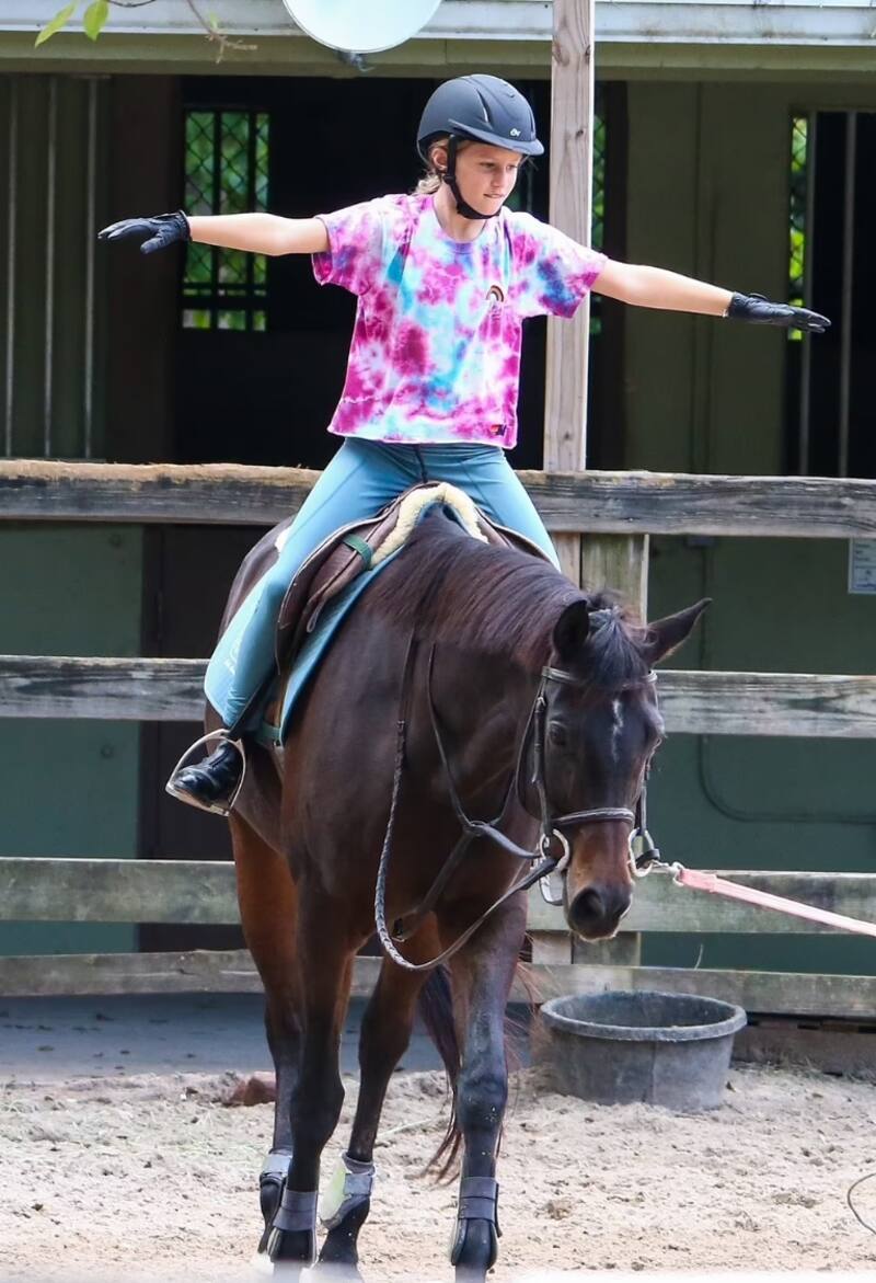 Por otra parte, su hija tomó precauciones mientras paseaba encima del animal, pues llevaba puesto un casco; además, un entrenador estaba siempre muy pendiente de ella, acomodando a Vivian mientras se preparaba para su excursión, pero la joven parecía una profesional cuando levantó los brazos en el aire y se sentó sobre el caballo, que parecía trotar a paso lento.
