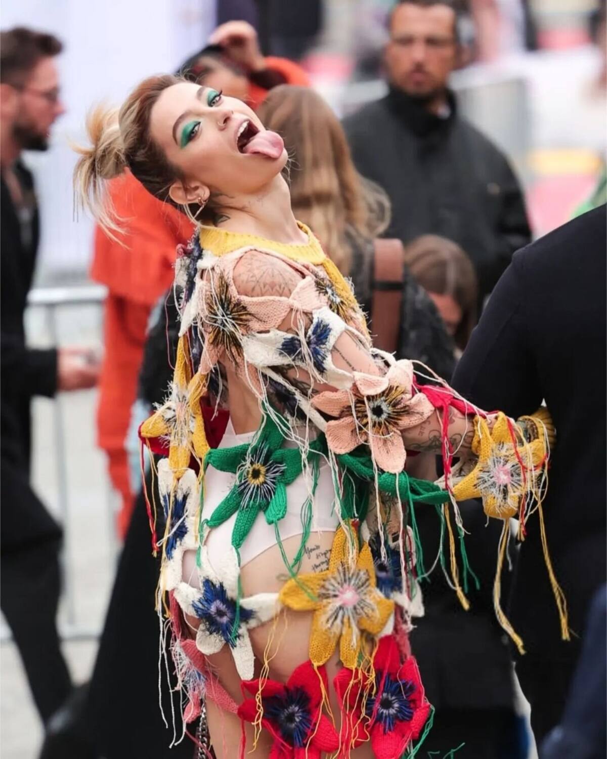 A pesar de que en el último tiempo Paris se ha mantenido enfocada en su carrera musical, no ha perdido su sentido de la moda, y apareció usando un colorido vestido con flores bordadas y con mucho espacio para mostrar el traje que usaba debajo.