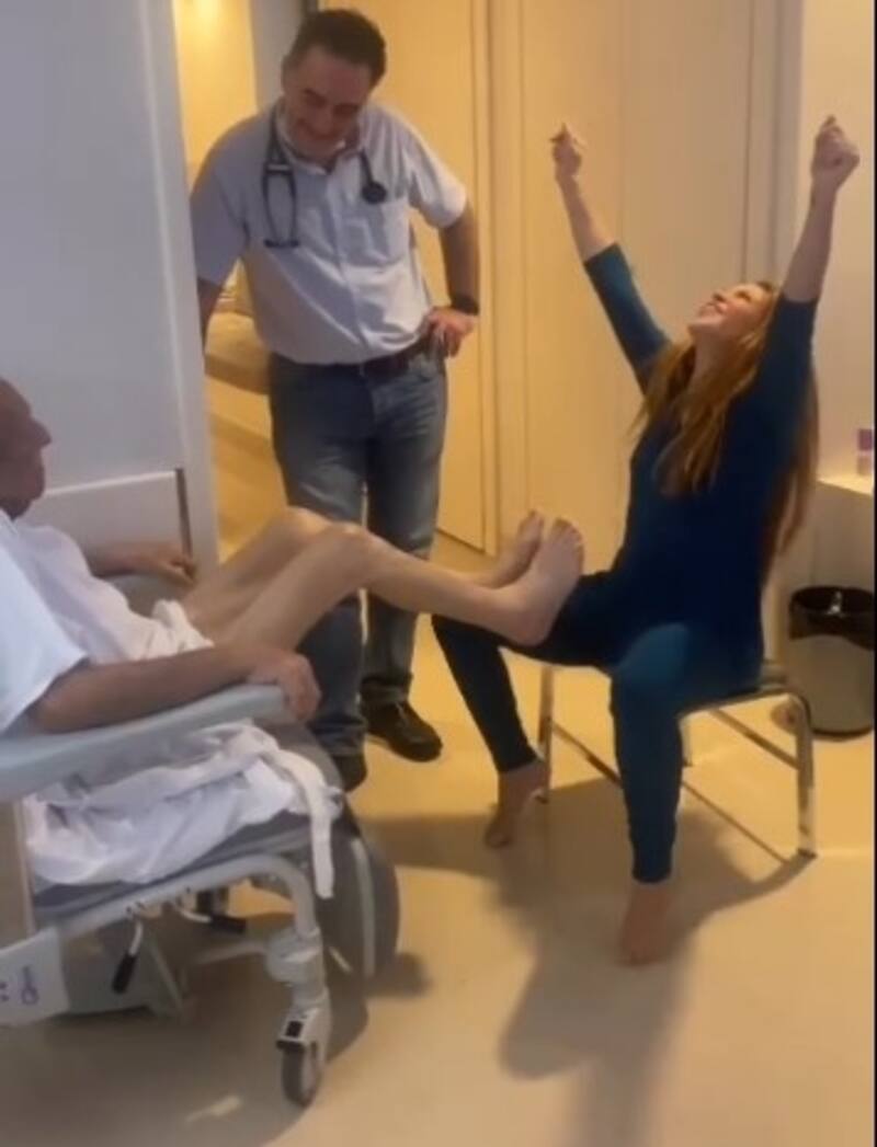 En su última visita al hospital, fue la propia Shakira quien ayudó a su padre a movilizar sus extremidades inferiores y a realizar unos ejercicios básicos de motricidad y fuerza, con el objeto de recuperar la movilidad de las piernas, que se han visto debilitadas muscularmente en los pasados meses. (ver video abajo)