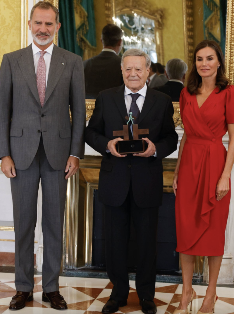 Fue durante su primer evento público correspondiendo a la reunión anual del Patronato del Instituto Cervantes, del que Felipe VI es presidente de honor este año en Aranjuez que la soberana lució un sencillo vestido escarlata de Cherubina y zapatillas color nude Carolina Herrera, que dejaban todo el protagonismo a las vistosas joyas.