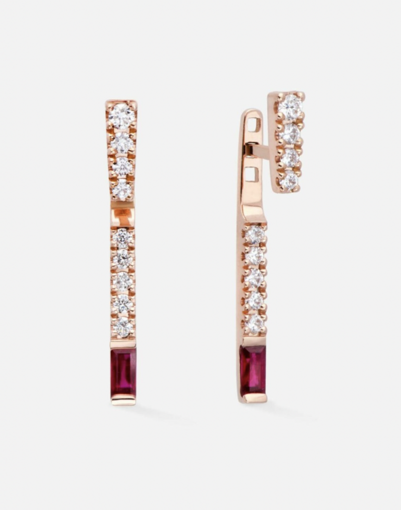 Para este importante evento, la reina estrenó los aretes de su marca favorita Gold & Roses, el modelo Needle I Am están hechos de oro rosa, diamantes y rubíes y pertenecen a la colección I AM RED que tiene un significado oculto.
