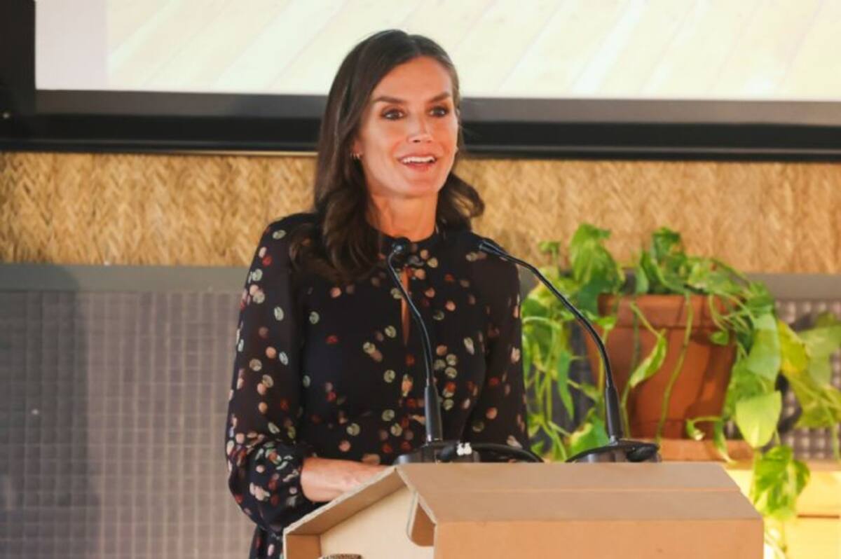 Para la ocasión, la esposa del rey Felipe VI utilizó una prenda del diseñador Massimo Dutti; se trata de un vestido azul floreado de escote de gota con mangas largas y que marca tendencia para este otoño, pues lo mismo puede servir para actos formales como para un look causal de oficina, como lo ha mostrado perfectamente la monarca.