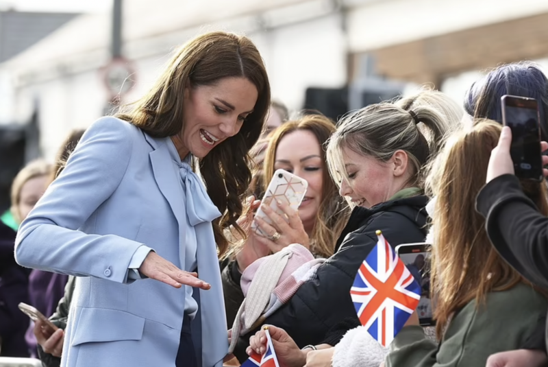 Ante el sorpresivo reclamo, Kate logró mantener la compostura se rió y soltó la mano de la mujer antes de seguir saludando, situación que fue elogiada en redes sociales.