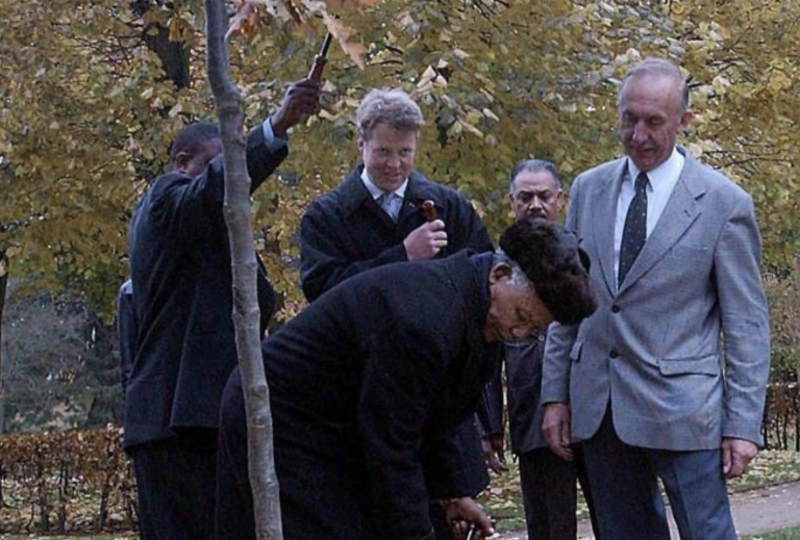 "El roble que plantó en Althorp prospera hoy, testigo del honor de la visita de un gran hombre. (Almorzamos curry malayo, uno de sus favoritos)", compartió Spencer.