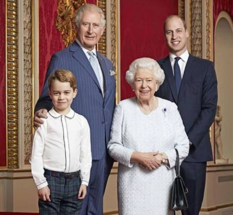 La imagen tomada en la sala del trono en el Palacio de Buckingham, mostró a la difunta Reina Isabel II y sus herederos, el actual rey Carlos III, el príncipe William y el príncipe George.