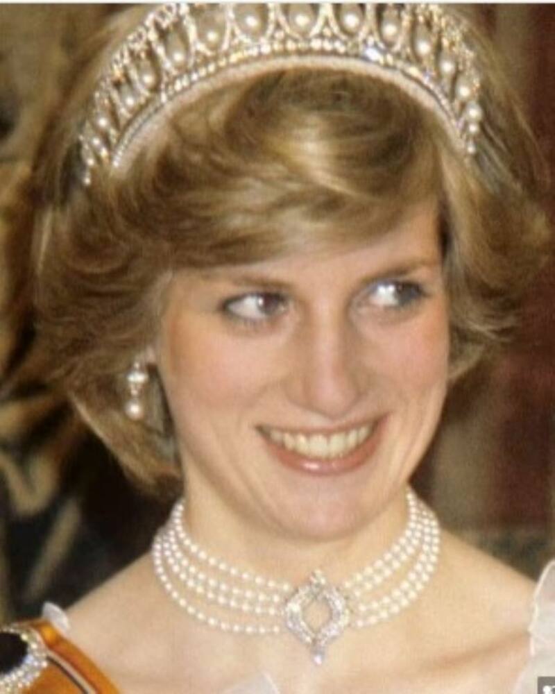 Los aretes y la gargantilla de perlas fueron portados por la reina Isabel II en varias ocasiones, pero también las empleó Lady Di. El collar es particularmente vistoso pues tiene cuatro filas de perlas y un broche de diamantes. Se le conoce como "la gargantilla japonesa", ya que le fue obsequiada por el gobierno de Japón en la primera visita que hizo la dignataria a ese país en 1975.