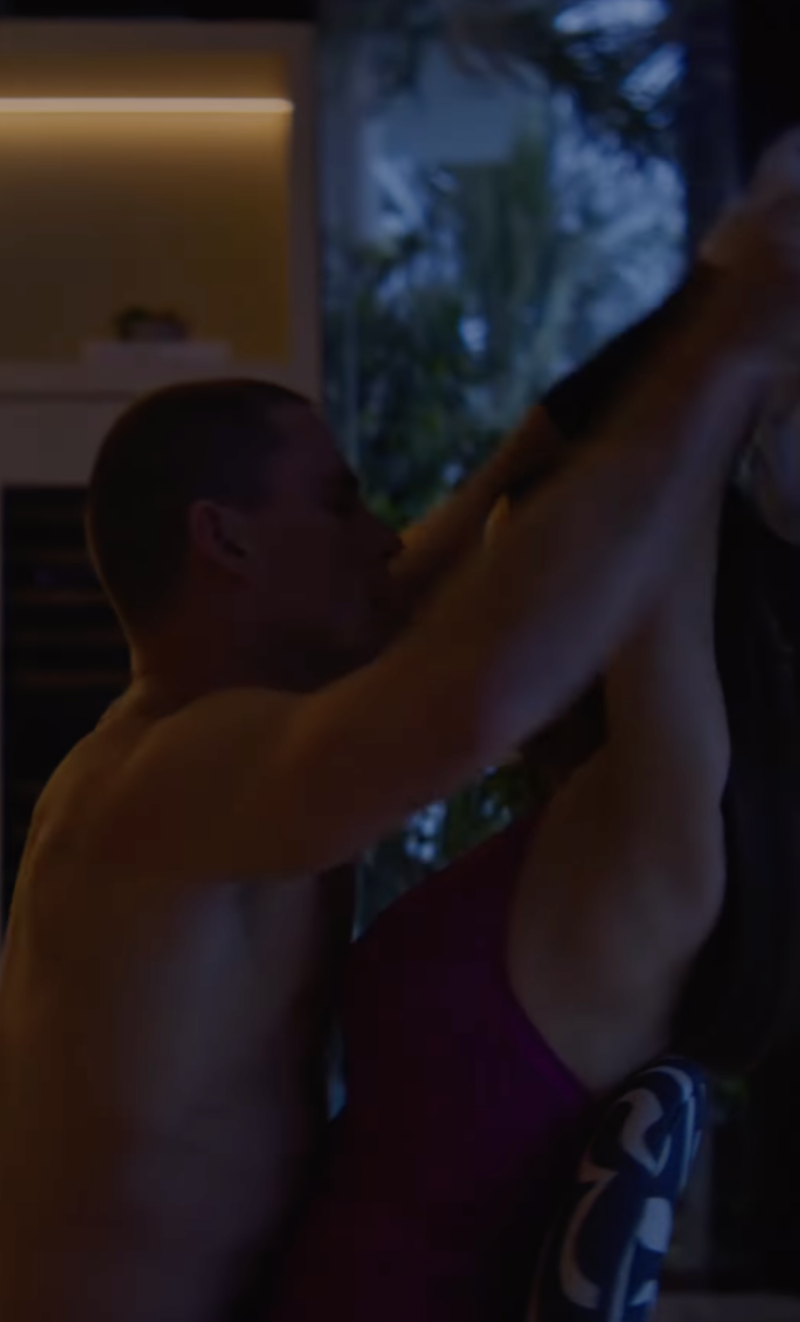 Durante el adelanto se ve al stripper Mike Lane realizando un sensual baile para el personaje de la actriz mexicana, luego de conocerse cuando él era mesero en Miami.