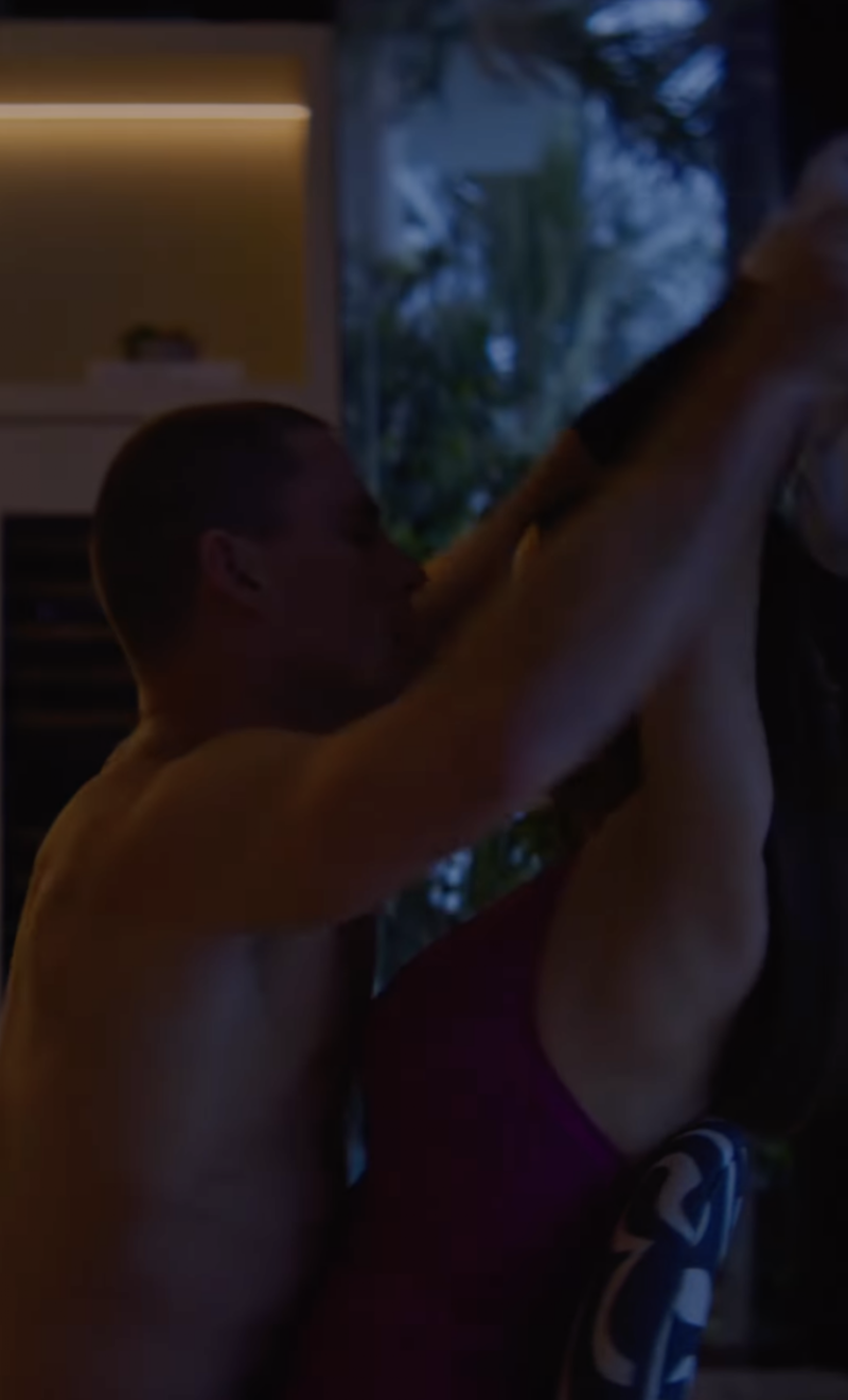 Durante el adelanto se ve al stripper Mike Lane realizando un sensual baile para el personaje de la actriz mexicana, luego de conocerse cuando él era mesero en Miami.