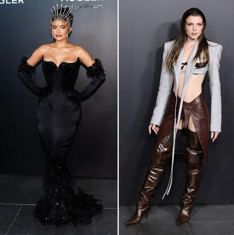 Otras celebridades como Kylie Jenner y Julia Fox llegaron a la alfombra roja en la inauguración de la exhibición en el Museo de Brooklyn, vestidas con looks que dieron mucho de qué hablar, ya que la hermana de las Kardashians lució una corona que llamó mucho la atención.