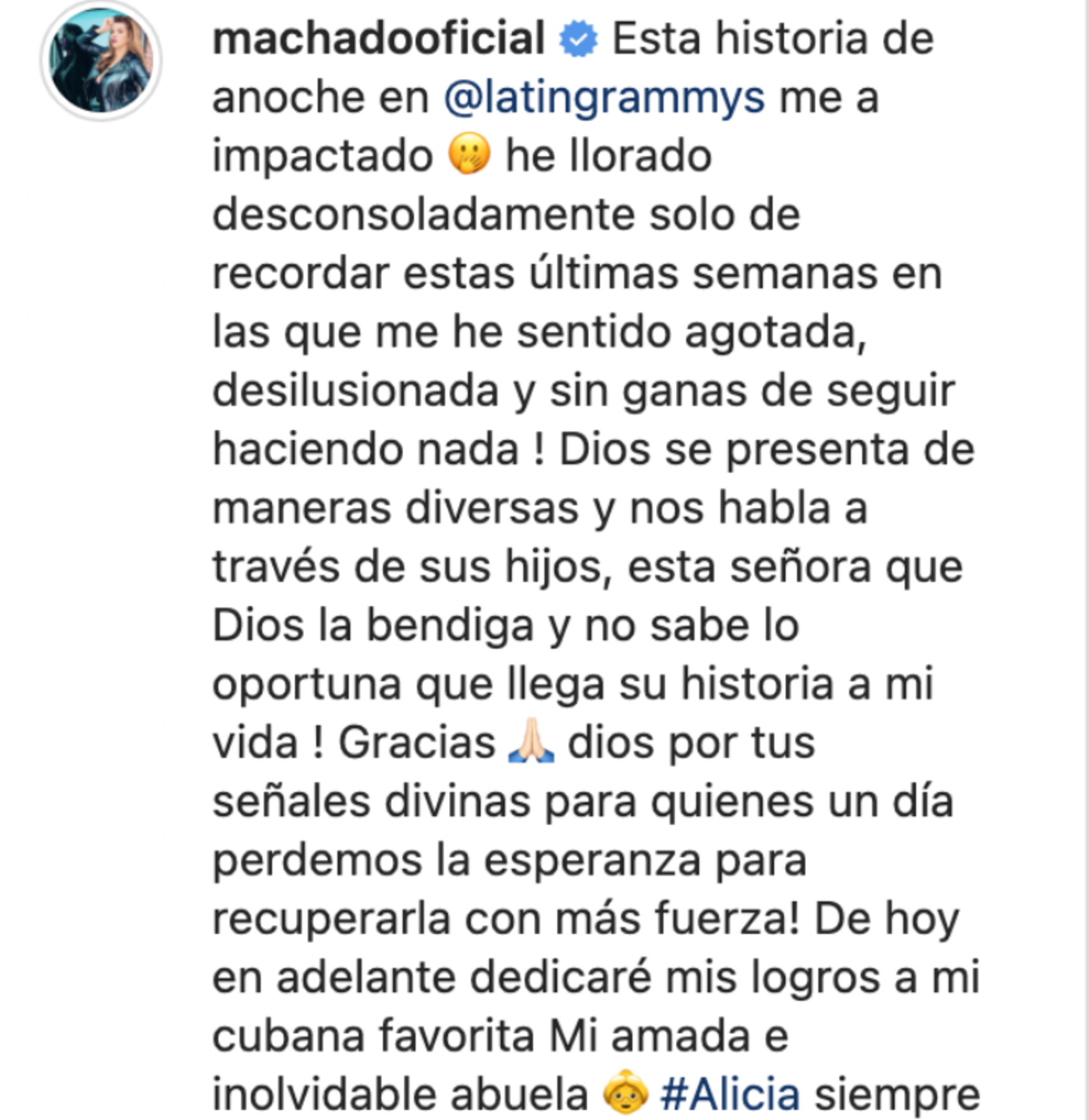 En medio de su depresión, la ganadora de la primera edición de La Casa de los Famosos aseguró que la historia de Ángela Álvarez, la mujer de 95 años que acaba de ganar un Grammy Latino como Mejor Nueva Artista, le regresó un poco de ilusión.