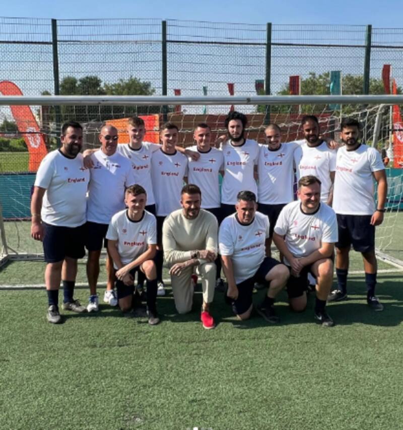 "Una mañana especial con los fans de @england, reviviendo grandes recuerdos antes del gran partido. Estoy tan emocionado por Gareth y el equipo... Buena suerte, chicos. Todo el país está detrás de ustedes", escribió Beckham en la publicación.
