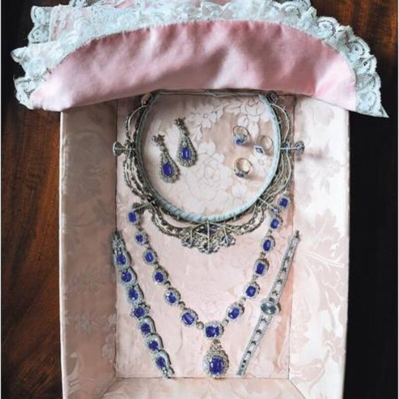 Para la importante ocasión, la reina consorte lució una especial tiara que perteneció a Isabel II. Se trata de una lujosa tiara de zafiros y diamantes cuyas joyas pertenecieron originalmente a una gargantilla de la Princesa Luisa María de Bélgica. La antigua monarca encargó la pieza de joyería para completar una colección que le regaló su padre, el rey Jorge VI, que consistía en un collar, unos pendientes y una pulsera de diamantes y zafiros.