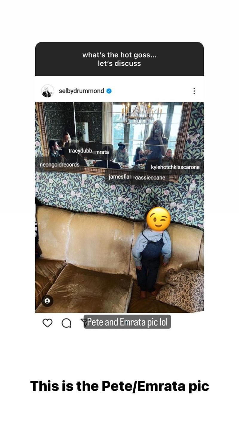 La modelo fue etiquetada en una postal que subió Selby Drummond, fundadora de la aplicación de citas Bumble y amiga de la también escritora. La foto fue retirada minutos después de ser publicada, pero la cuenta de Instagram Deux Moi, especialistas en chismes de famosos, la volvió a difundir.
