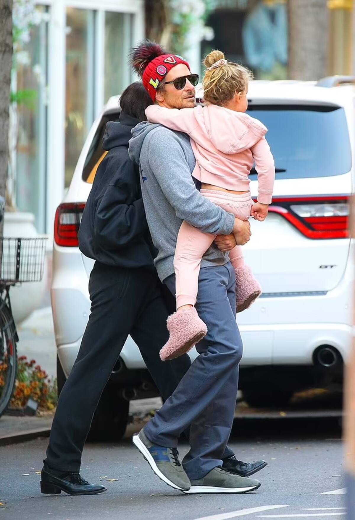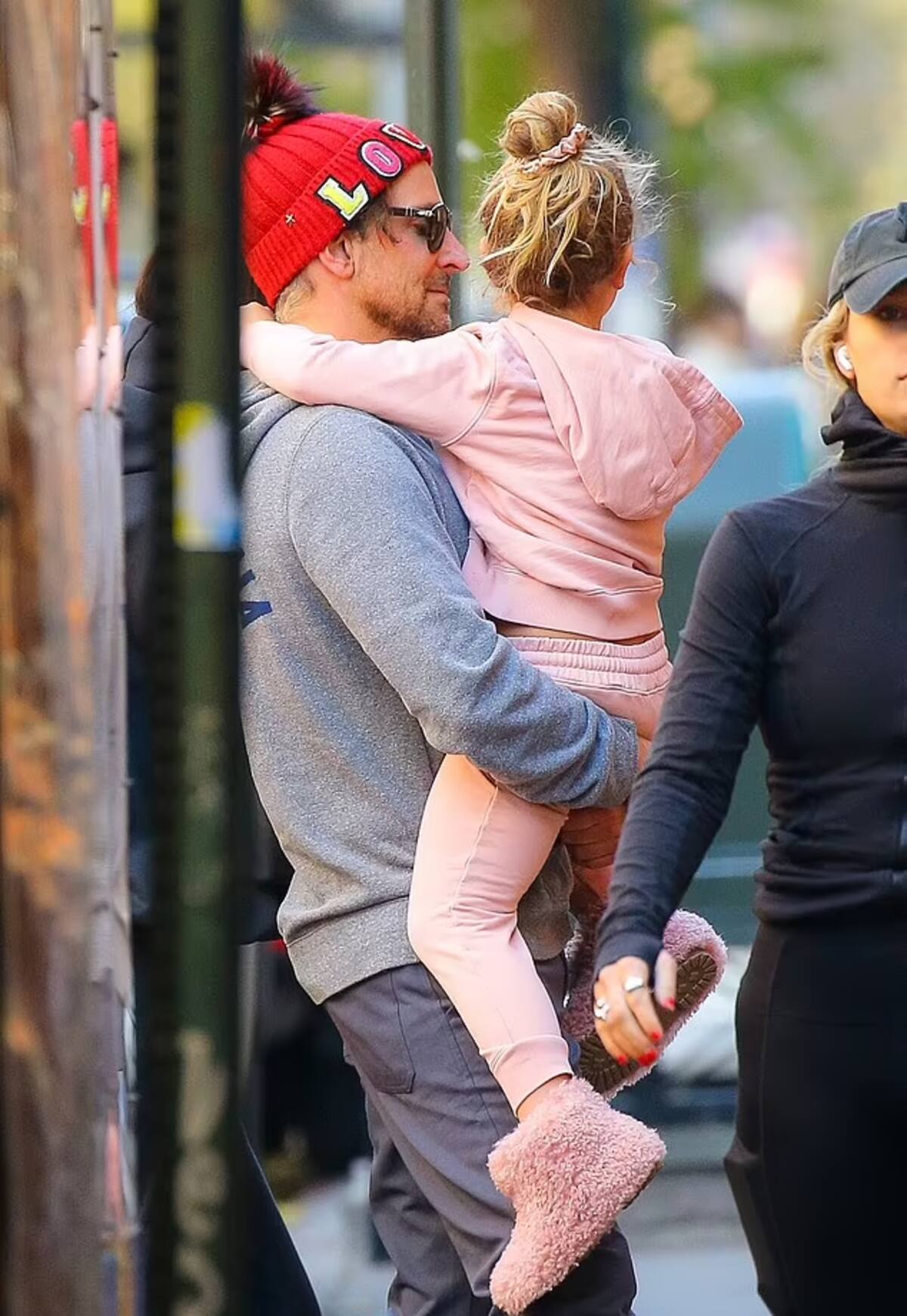 Por su parte, Bradley lució muy cómodo, igual que su pareja, con una sudadera gris con capucha y un pantalón del mismo color, combinado con un gorro de lana colorido que incluía la palabra "Love", mientras conversaba con Lea, quien vestía una adorable con una chaqueta y pantalones rosas.