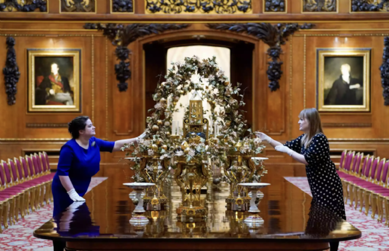 Para continuar con la tradición que año con año se realiza, la Royal Collection Trust, colección de arte y ornamentos más antiguos e importantes de la corona, presentó la decoración de este año la cual incluye coronas de flores, guirnaldas y luces y que permanecerá hasta el 2 de enero de 2023.