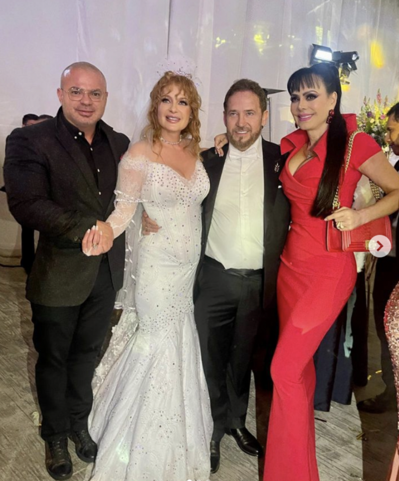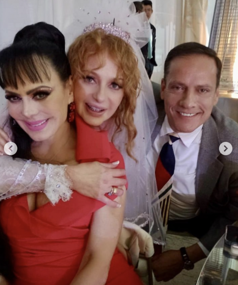 "Que Dios los bendiga y que sean felices por siempre, son una pareja linda y llena de luz", escribió Maribel Guardia, que asistió a la boda con un ceñido vestido rojo de cuello alto.