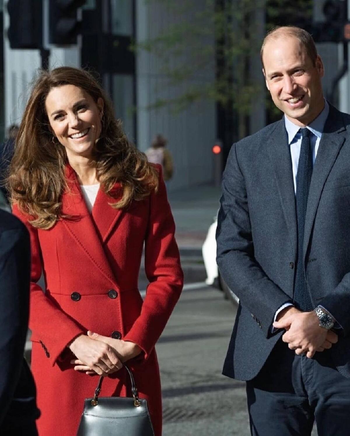 Su abrigo en el pasado fue comparado con un traje que usó la princesa Diana, se trata de un traje de falda y chaqueta roja cruzada y adornada de Catherine Walker, cuando asistió a un partido de rugby de la Copa del Mundo de 1991. La diseñadora utilizó un abrigo similar en una visita a Birmingham en 1984.