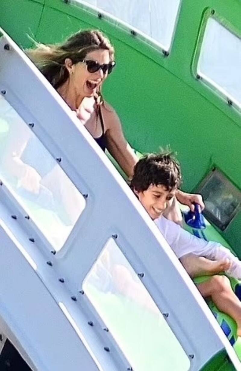 La modelo, que ha sido portada de revista en mil 200 ocasiones, sorteó los 27 grados Celsius que se registraron este lunes en la ciudad estadounidense con un tobogán verde, al que se le vio subir en varias ocasiones acompañada de su hijo mayor, que recientemente cumplió 13 años. “¡Tenemos un nuevo adolescente en casa! ¡Feliz cumpleaños mi dulce ángel! Estoy tan orgullosa del joven amable”, escribió Bündchen en su perfil de Instagram el jueves.