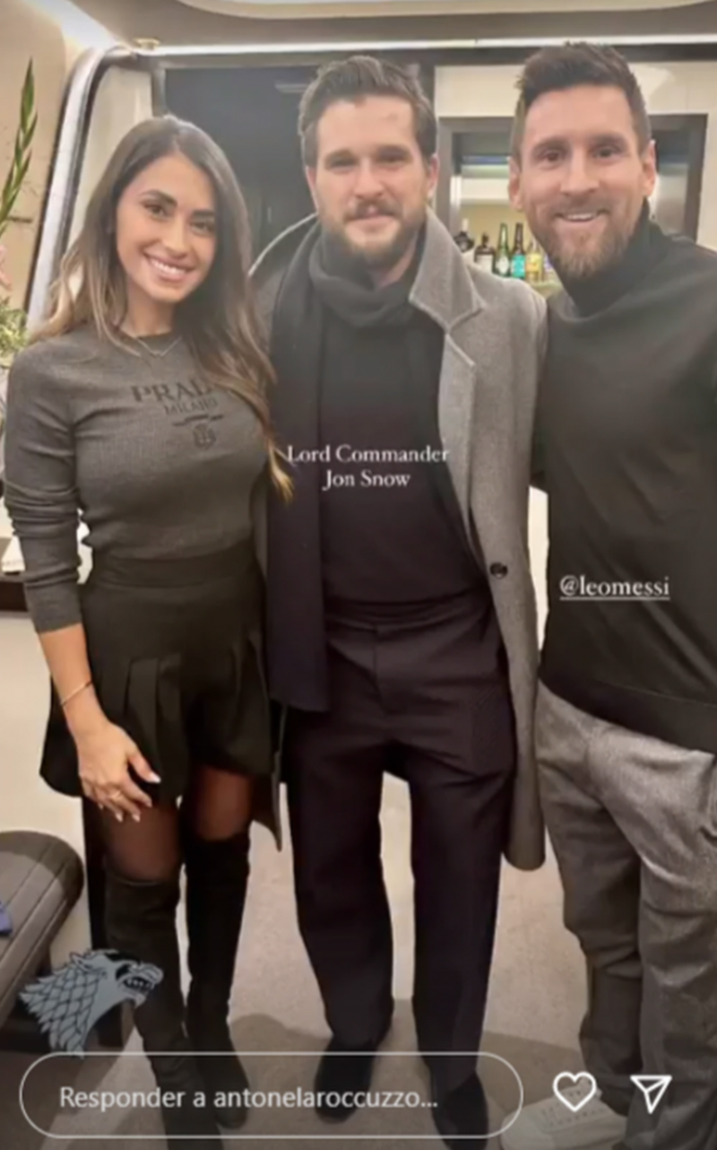El actor que saltó a la fama al darle vida a John Snow posó muy emocionado con Messi y Antonella, ya que mientras el actor es muy fan del futbolista, la esposa del argentino es muy fanática de Kit gracias a la popular serie Game of Thrones, así que esta es una foto muy especial para todos los involucrados.