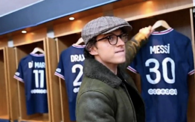 El protagonista de Spider-Man es uno de los mayores admiradores del argentino y para muestra estas fotos en la que expresó la admiración que siente por el delantero del PSG, incluso durante su visita a El Parc des Princes, se tomó una foto en el vestidor del 10.