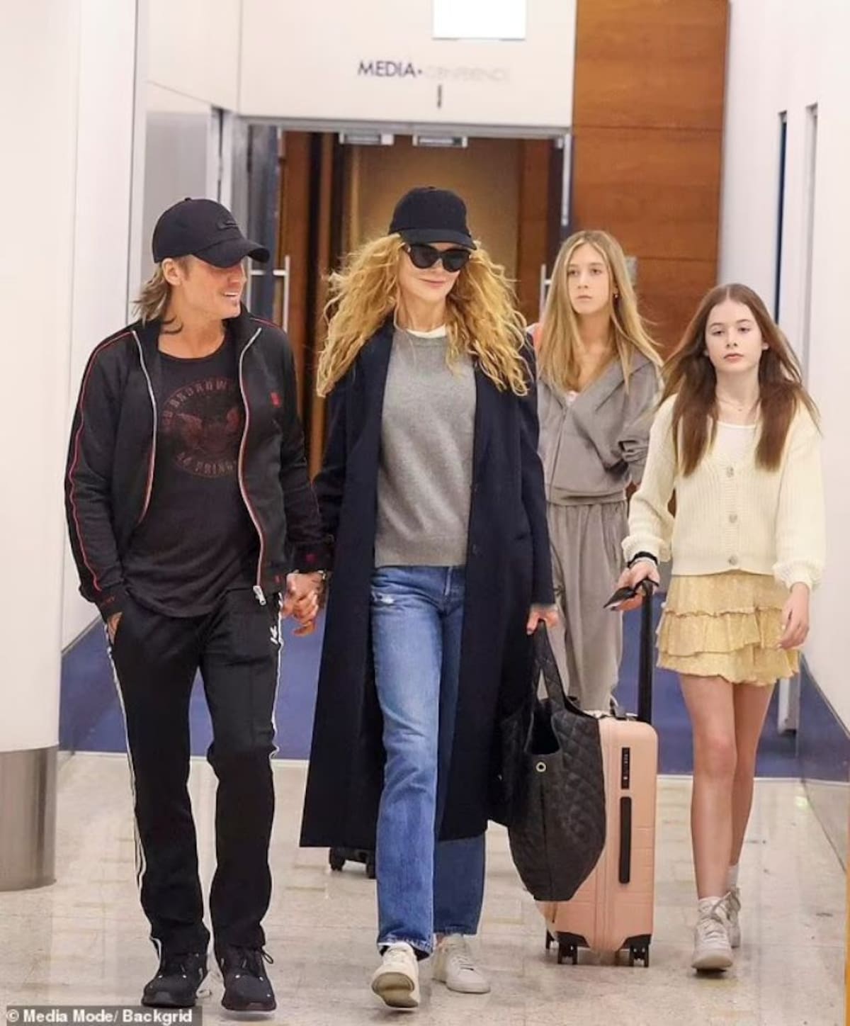 El periódico británico Daily Mail tuvo acceso a una serie de fotografías en las que se ve a la familia muy contenta de estar reunida nuevamente mientras están en una sala de llegadas VIP, y cargando sus equipajes. Kidman y Urban se mostraron inseparables como muestra de cuánto se habían extrañado, y caminaron tomados de la mano mientras sus hijas los seguían de cerca.