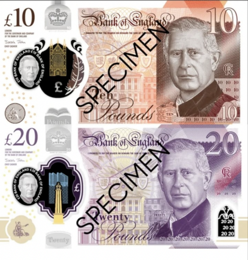 El banco de Inglaterra dio a conocer que serán los billetes de 5, 10, 20 y  50 los que lleven el retrato y sólo se imprimirán para reemplazar el dinero gastado o por si hay un aumento en la demanda por lo que el dinero con la imagen de la difunta reina Isabel seguirá circulando y no será retirado.