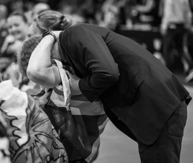 La leyenda de la foto dice: "Un momento especial a principios de este año. Un momento verdaderamente extraordinario entre el miembro del equipo del Reino Unido de los Juegos Invictus, Tony Young, y el príncipe Harry, el duque de Sussex. El príncipe estaba visiblemente conmovido después del abrazo y las lágrimas fluían por todo el estadio".