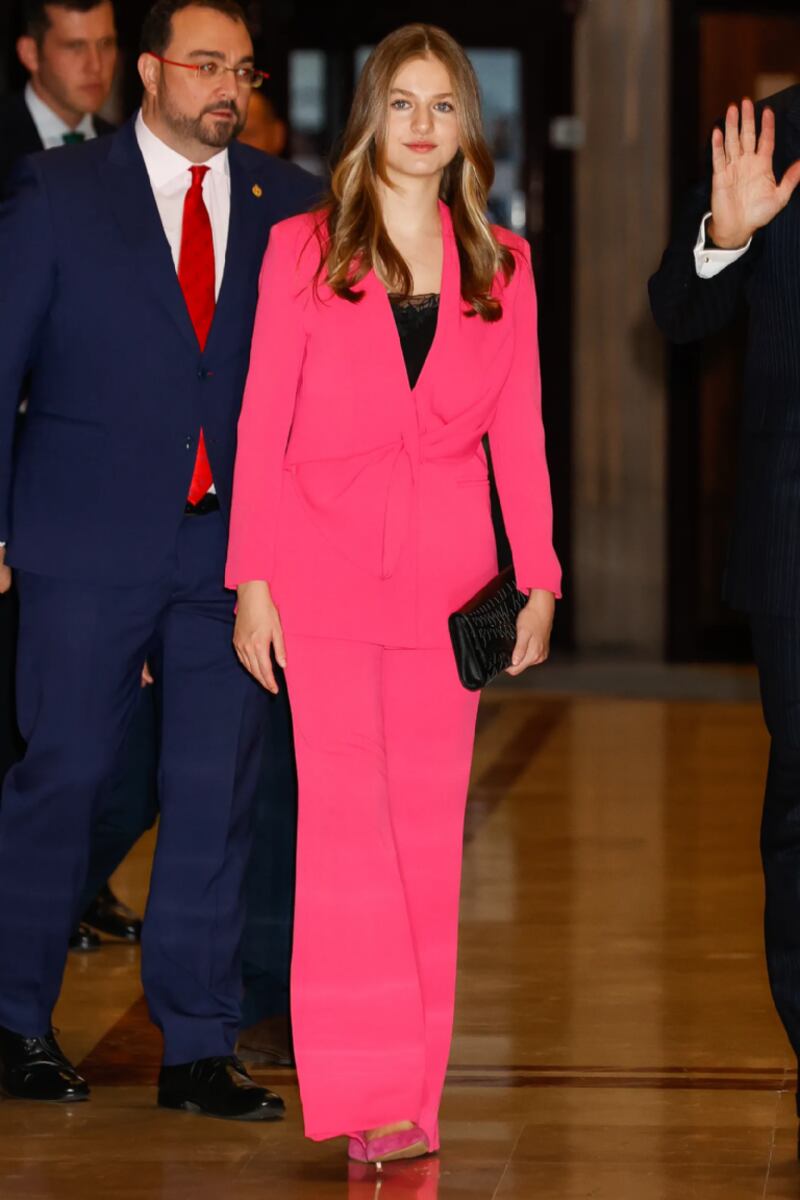 Leonor cautivó una vez más con su poderoso estilo en el concierto previo a los Premios Princesa de Asturias. En dicho evento, la princesa se convirtió nuevamente en el centro de todas las miradas por su elegante look, ya que la joven lució un traje en color fucsia, con ondas en su abundante cabellera, un maquillaje muy natural, pero en esta ocasión perfilando un poco sus ojos en negro y utilizando máscara de pestañas para darle mayor volumen a su mirada.