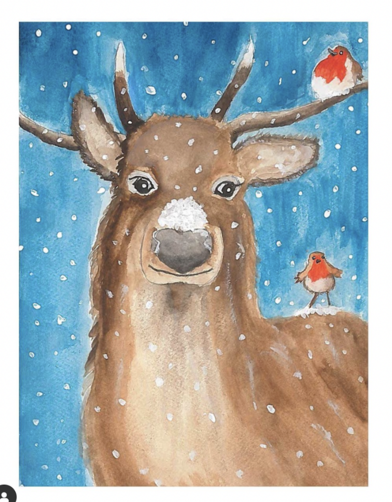 Los príncipes de Gales compartieron la tarjeta de Navidad que pintó el príncipe George (9). La postal fue hecha a mano por el segundo en la línea de sucesión al trono de Inglaterra y muestra a un adorable reno con un montón de nieve en la nariz y dos pájaros de pecho anaranjado sobre el animal.