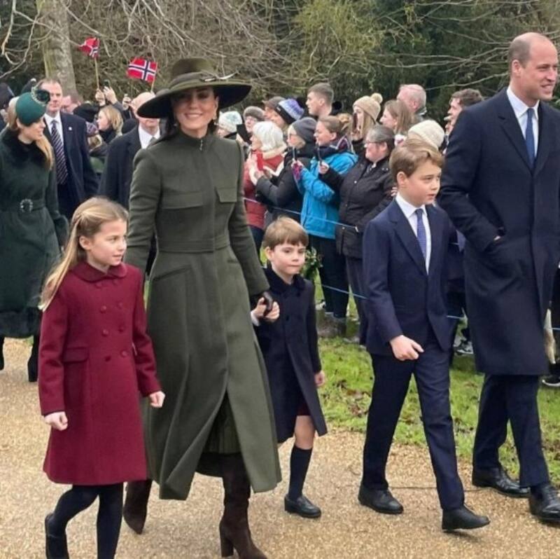 Kate Middleton y el Príncipe William se veían orgullosos cuando caminaron con sus tres hijos frente a los fanáticos reales reunidos afuera de la iglesia de Sandringham durante el primer paseo navideño del Rey Carlos III y que significó el debut del pequeño Príncipe Louis, de cuatro años, en esta tradicional actividad.