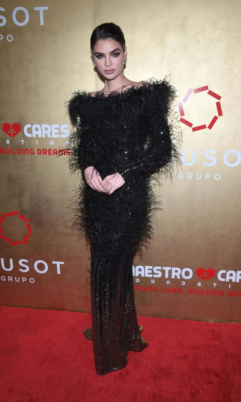 En la reciente gala de Maestro Cares, fundación que preside el intérprete de Vivir mi vida, la paraguaya lució un elegante vestido negro hasta el piso que contenía miles de lentejuelas del mismo color. El atuendo además era de manga larga y escote barco con unos flequillos que iban desde los hombros hasta la falda del vestido.