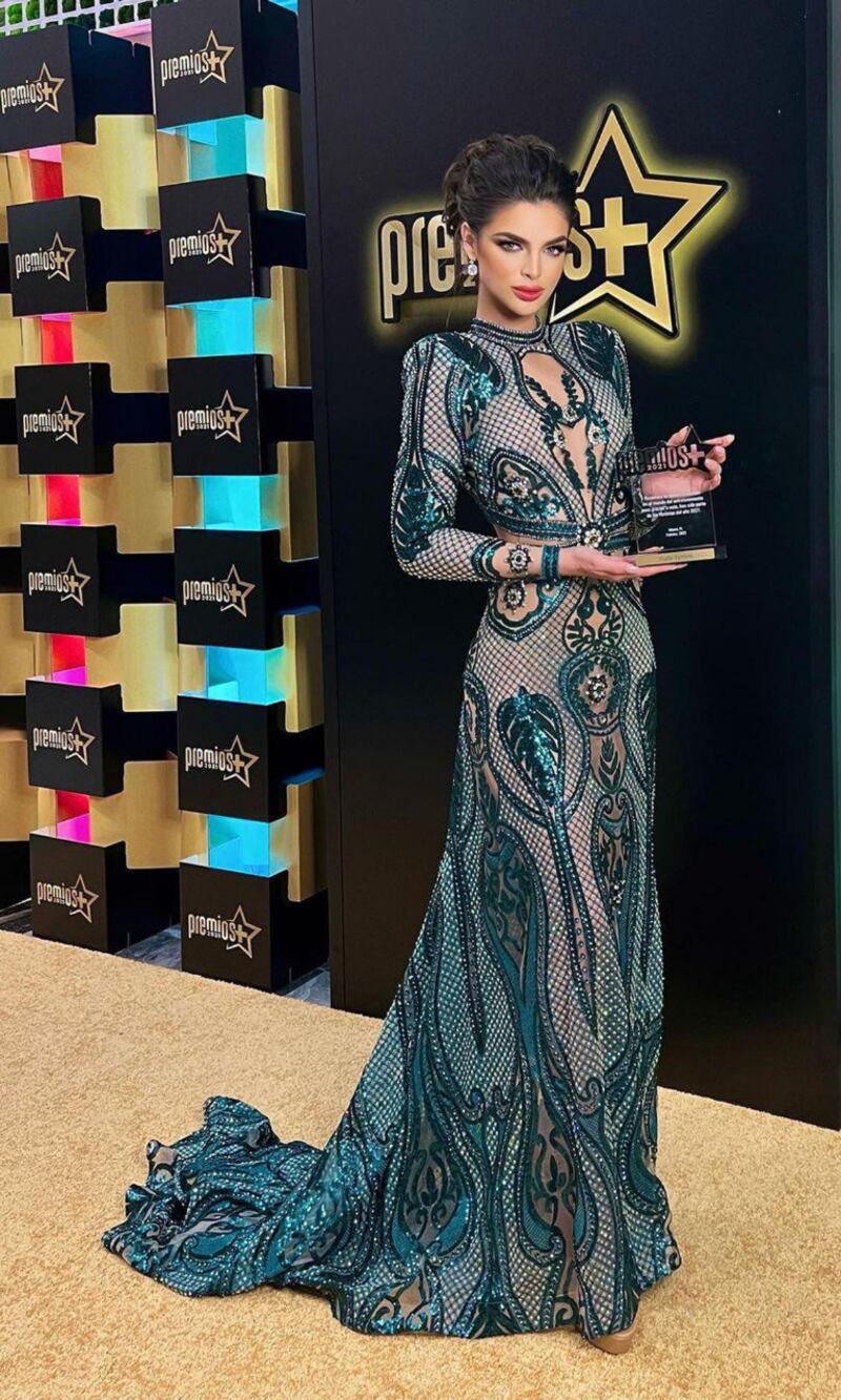 Siendo la primera vez que Nadia asistió a la premiación de lo mejor de la música latina, la modelo no quiso desentonar con su prometido y optó por lucir un vestido bastante original de color rojo con un escote pronunciado y completamente ceñido a su figura; un diseño único de Liastublla.