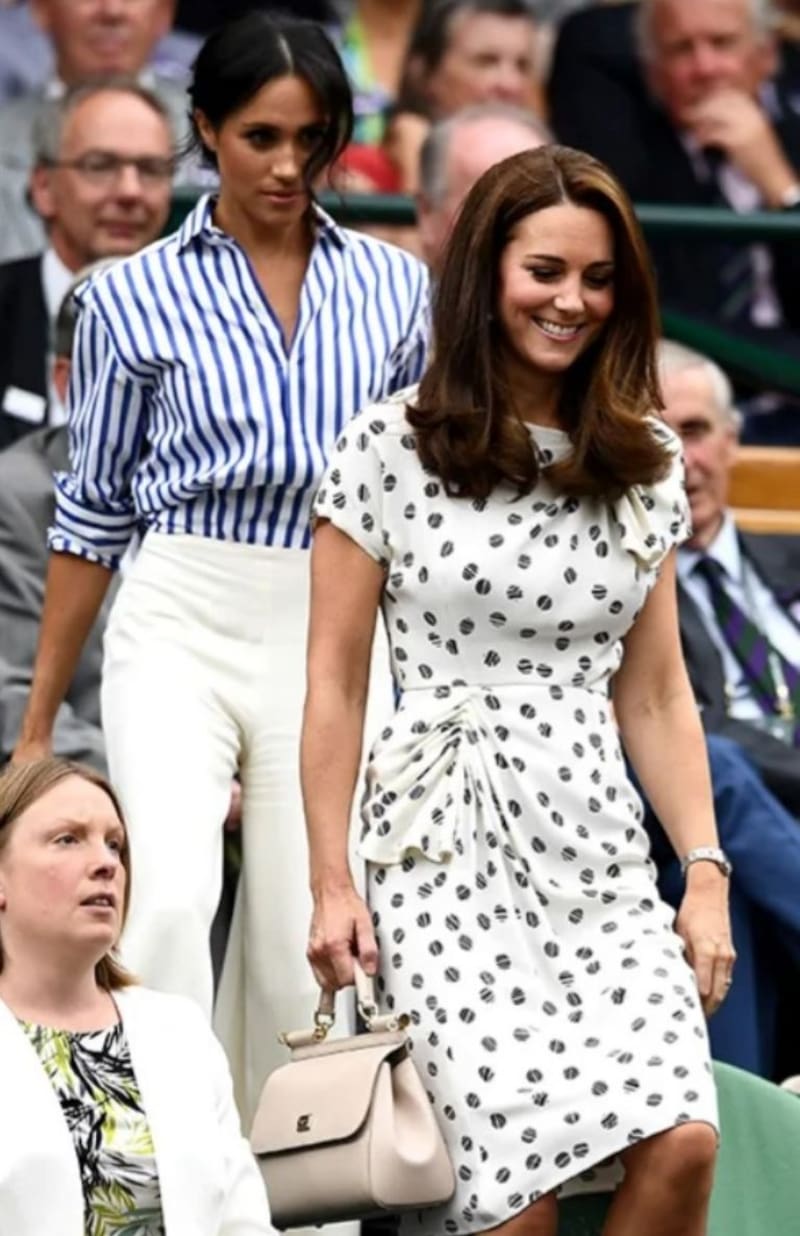 Kate Middleton apareció por Wimbledon acompañando a su cuñada Meghan Markle en 2018 y completaba su look con un bolso color crema "Sicily" de Dolce & Gabbana.