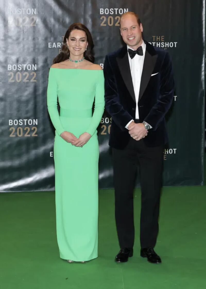 Y en el evento principal, los Premios Earthshot llamó la atención con un vestido verde brillante de Solace London de 525 dólares prestado por la plataforma de alquiler Hurr, pero lo que más llamó la atención fue la gargantilla de esmeraldas y diamantes que la princesa Diana usó por última vez hace décadas.