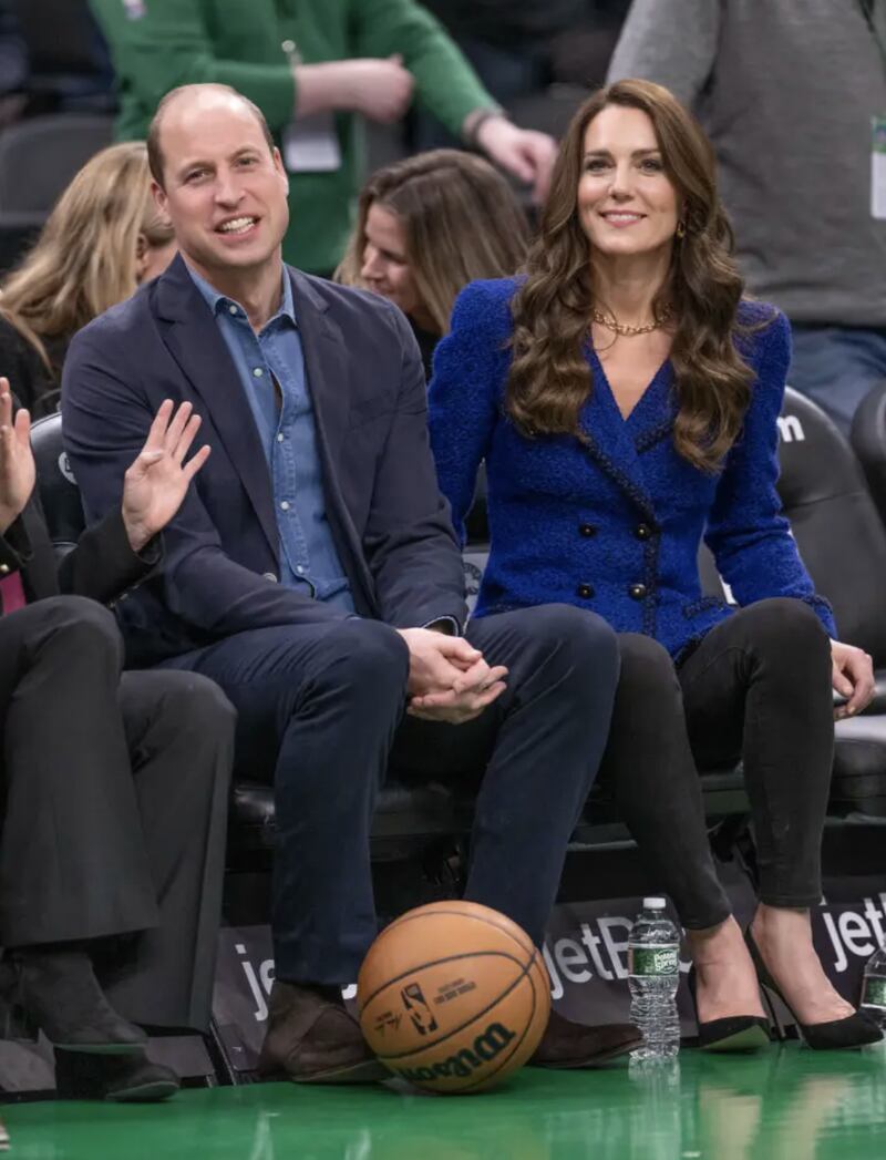 Más tarde, Kate acompañó a su marido al partido de los Celtics, en donde apareció con un tesoro vintage; una chaqueta azul de Chanel. unos pantalones negros y unos zapatos de tacón negros. Como accesorios usó un collar de cadena de Laura Lombardi de 158 dólares y unas arracadas de Shyla London que cuestan aproximadamente 90 dólares.