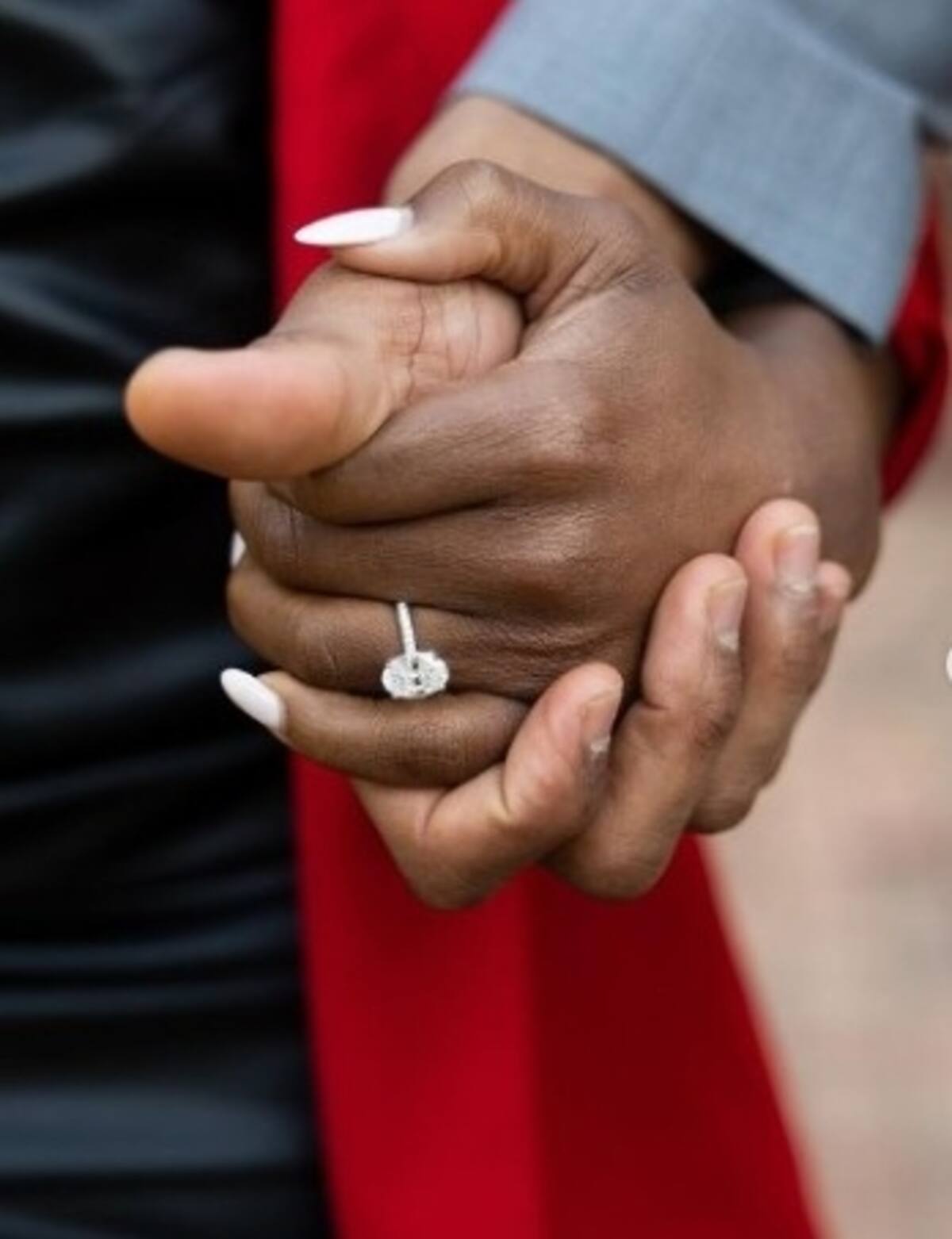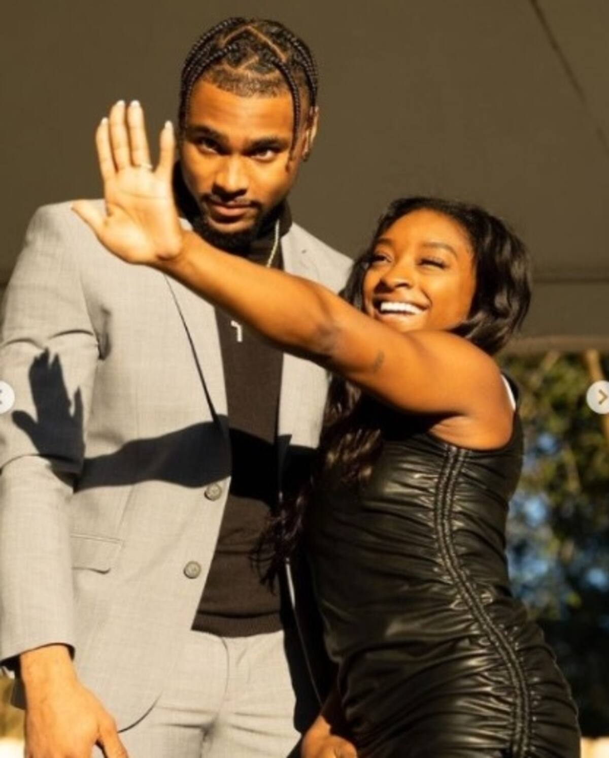 Owens apareció muy elegante con un traje gris que combinó con una camisa negra, el mismo color que usó la gimnasta al portar un vestido de cuero, su look lo completó dejándose el cabello suelto además de un maquillaje sutil. "Desperté esta mañana con mi prometida", escribió Owens en su cuenta de Instagram.