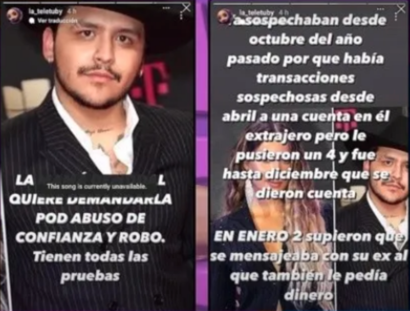 En la cuenta de 'La Teletubby' fueron publicados los señalamientos que indican que Silvia Cristina Nodal descubrió a Belinda desviando fondos de las cuentas del también compositor así como transacciones sospechosas.