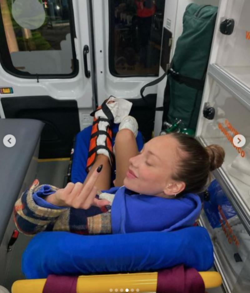 A través de su cuenta de Instagram le informó a sus más de 29 millones de seguidores del inconveniente que resultó en una herida en su pierna, ya que después de la foto de la ambulancia, se ve que la madrileña termina el día con la extremidad en alto.
