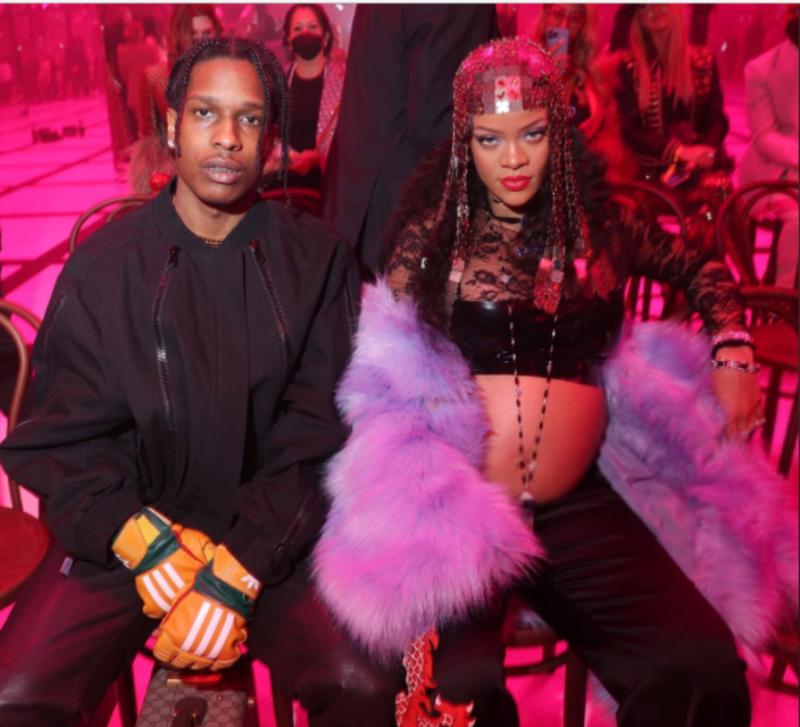 Por supuesto para la Semana de la Moda de Milán tenía que brillar aún más, por lo que la intérprete de Diamonds eligió prendas que resaltaron su belleza y también su pronunciada barriguita, todo esto durante el desfile de Otoño/Invierno 2022 de la marca Gucci, donde llegó acompañada de su pareja y futuro padre de su bebé, el rapero A$AP Rocky.