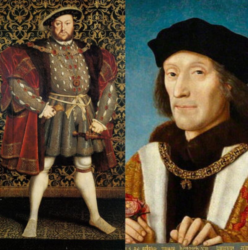La línea podría comenzar con uno de los célebres monarcas del Imperio Británico; Enrique VII, quien era formidable, pelirrojo, atlético y déspota. Su obsesión enfermiza por procrear un heredero varón, lo llevó a recorrer múltiples camas y casarse con seis mujeres reconocidas por provenir de nobles familias. Tales eran: Catalina de Aragón, Ana Bolena, Jane Seymour, Ana de Cleves, Catalina Howard y Catalina Parr.