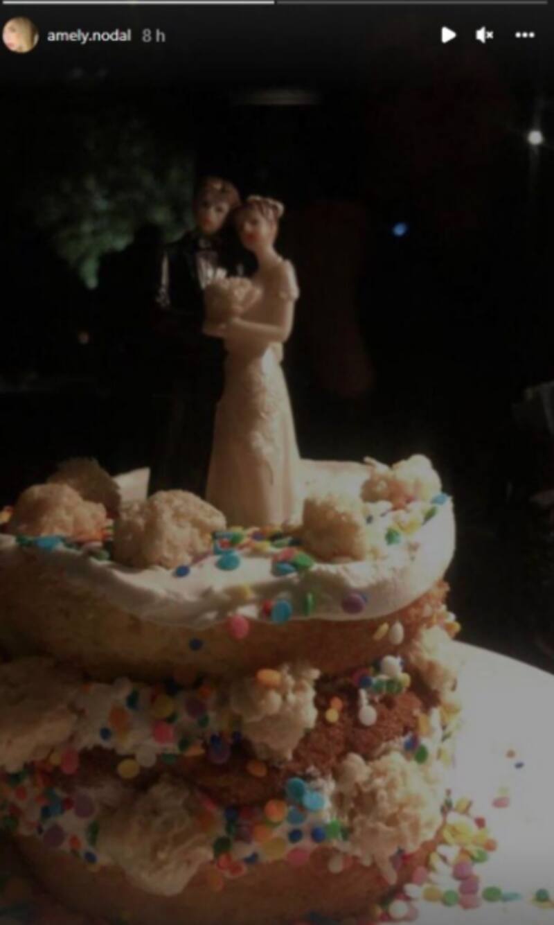 Además, la madrugada del miércoles, Amely subió a sus redes sociales una foto de un pastel de bodas adornado con muñecos de novios y muy colorido, al estilo Belinda.