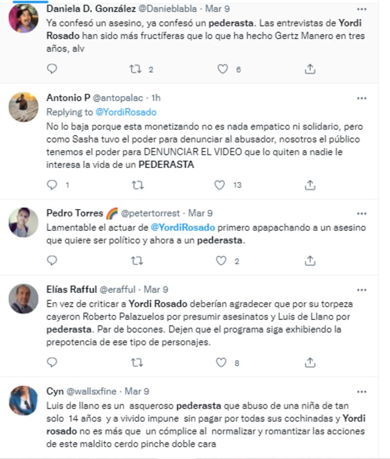 Pero ahí no paro el asunto, pues también Yordi Rosado fue criticado duramente por los internautas, quienes le pidieron que por ética eliminara el video con la entrevista a De Llano, argumentando que se trataba de un pederasta.
