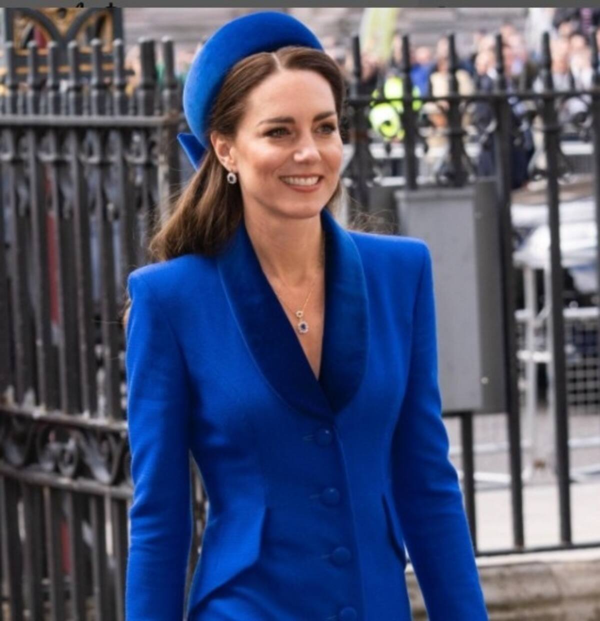 Quien sí estuvo presente fue el príncipe William y su esposa, Kate Middleton, quien deslumbró al arribar a la abadía de Westminster donde se realiza la tradicional misa. La duquesa robó las miradas de los asistentes por el look que usó, un abrigo azul rey, sombrero tipo pillbox, zapatillas, guantes y accesorios pequeños pero sofisticados, fueron el complemento perfecto para que los presentes olvidaran por unos momentos que la reina no había acudido.