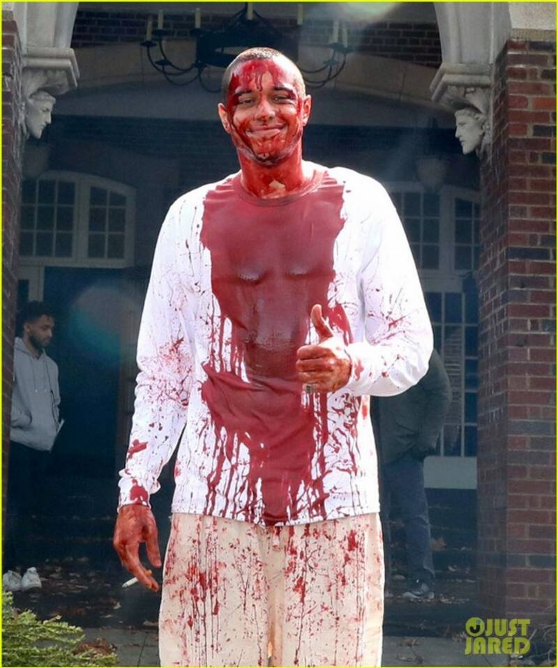 Las fotografías, publicadas por Just Jared, fueron tomadas del set de filmación de la película de terror The home, que se está rodando en Nueva Jersey, así que no tiene nada que ver con una riña con nadie ni mucho menos un accidente o nada parecido.