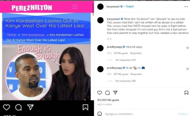 Durante los últimos meses, Kim se había mantenido en silencio ante las acusaciones del compositor pero el último posteo causó su enojo al saber que nuevamente estaba mintiendo sobre que no lo deja ver a sus hijos cuando había estado esa mañana con ellos. El nuevo tráiler del show The Kardashians también fue motivo para que el intérprete de Donda expresara sus opiniones mediante redes sociales.