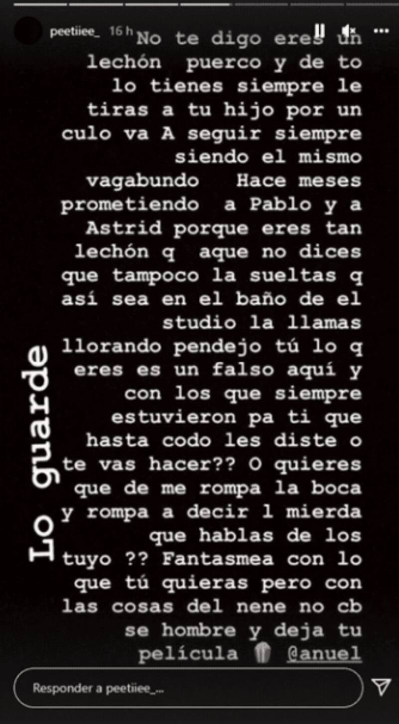 Fueron las hermanas de Astrid quienes tomaron su cuenta de Instagram para denunciar que Anuel había dejado en la calle tanto a la madre como a su propio hijo.