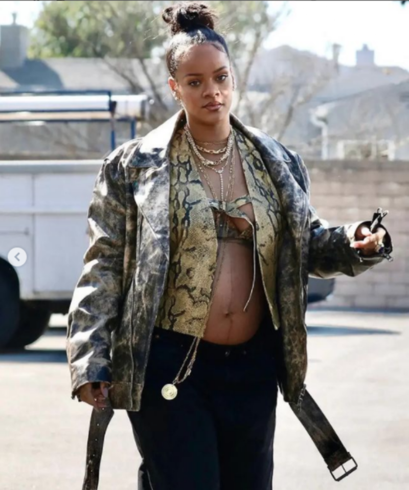 Rihanna también habló de cómo se siente en esta etapa de su embarazo: “Hay algunos días, especialmente en el tercer trimestre en donde te despiertas y dices ‘¿de verdad me tengo que vestir? El maquillaje te ayuda a verte como una persona real. Yo me enfoco mucho en hidratar mi cutis y hacer un poco de contouring”.
