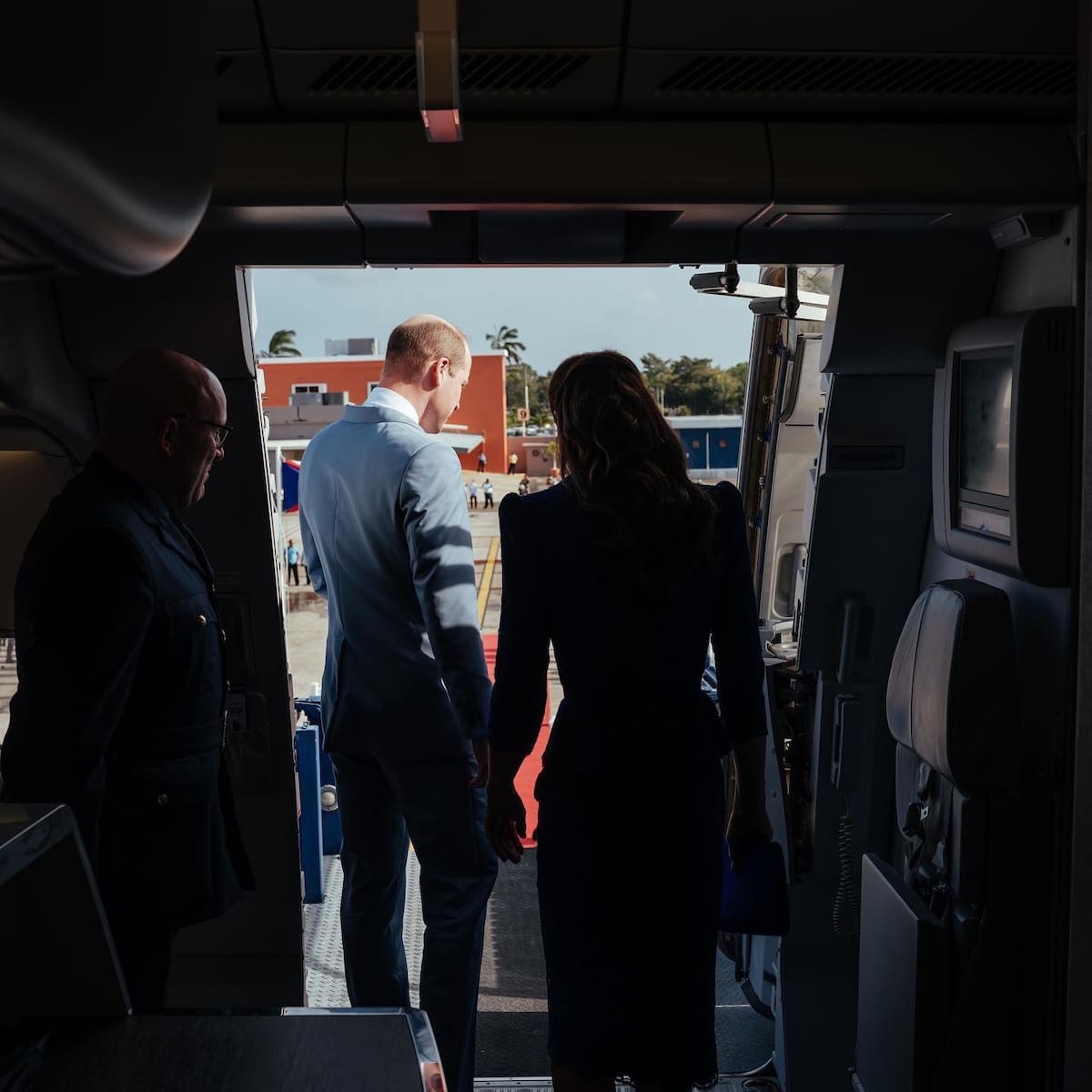 Los duques de Cambridge llegaron al aeropuerto internacional Philip S. W Goldson donde fueron recibidos con honores, por lo que se colocó una alfombra roja para la ocasión. El avión real fue decorado con la bandera de Reino Unido y el símbolo de la corona británica.